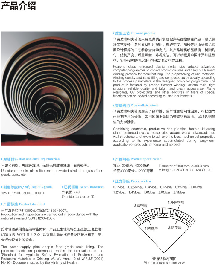 產品名稱: 玻璃鋼夾砂管道